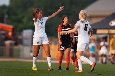 COLUMBIA, Mo. - Junior Taylor Grant and sophomore Reagan Russell each notched two goals and senior Danielle Nottingham tallied a goal and two assists as the Mizzou soccer team easily defeated Pacific, 5-1, Friday night in the season opener. Missouri improved to 1-0 on the year, while Pacific fell to 0-1.