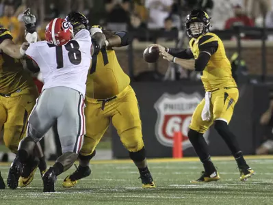 Finished the regular season ranked first in the SEC in passing yards (3,399) and second in passing yards per game (283.3) and yards per completion (14.34) … Posted top-20 marks nationally in all three categories as well, peaking at 10th nationally with his 3,399 passing yards … Also ranked second in the SEC in completions per game (19.75) and third in total offense (293.5) … His 3,399 yards through the air are the fifth-most in program history in a single season and the most ever in a 12-game season at Mizzou … His 23 passing TDs are the sixth-most in program history and only three Mizzou QBs have thrown for more in a single season … His 4,731 career passing yards already rank as the eighth-most in program history through two years … Rushed for a season-best 29 yards in Mizzou’s season opener against West Virginia (9/3) … Completed 24-for-37 for a career-high 450 yards while tying a school record with five touchdowns against Eastern Michigan (9/10) in Mizzou’s home opener … Tossed for three more touchdowns on 23-of-38 passing in Mizzou’s 28-27 loss to Georgia (9/17) ... His passing total of 1,106 yards was more than any Mizzou QB in his first three games ever ... Played only the first half against Delaware State (9/24) but put up huge numbers in the 79-0 win … In the first half alone, he completed 26-of-36 passes for 402 yards while matching the school record with five touchdowns … Went 17-for-37 for 167 yards and caught a touchdown from WR Eric Laurent on a trick play in the fourth quarter, a 21-yard strike for his first career TD grab, at LSU (10/1) ... Completed 20-of-40 passes for 281 yards and a pair of scores against Middle Tennessee (10/22) while also running for 63 yards on 10 attempts ... Went 18-for-31 with 220 yards and a pair of scores against Kentucky (10/29) … Also rushed six times for 34 yards in the game against Wildcats … Again went over the 300-yard mark at South Carolina (11/5), completing 23-of-40 passes for 302 yards and a score … Quarterbacked Mizzou to a win over Vanderbilt (11/12) after passing for 294 yards and two scores … Passed for 320 yards and a score at Tennessee (11/19) … Closed his season by sparking a second-half, 17-point comeback with a 67-yard TD pass to Johnathon Johnson against Arkansas (11/25) … Finished that game going 16-for-26 with 268 yards and a score.
